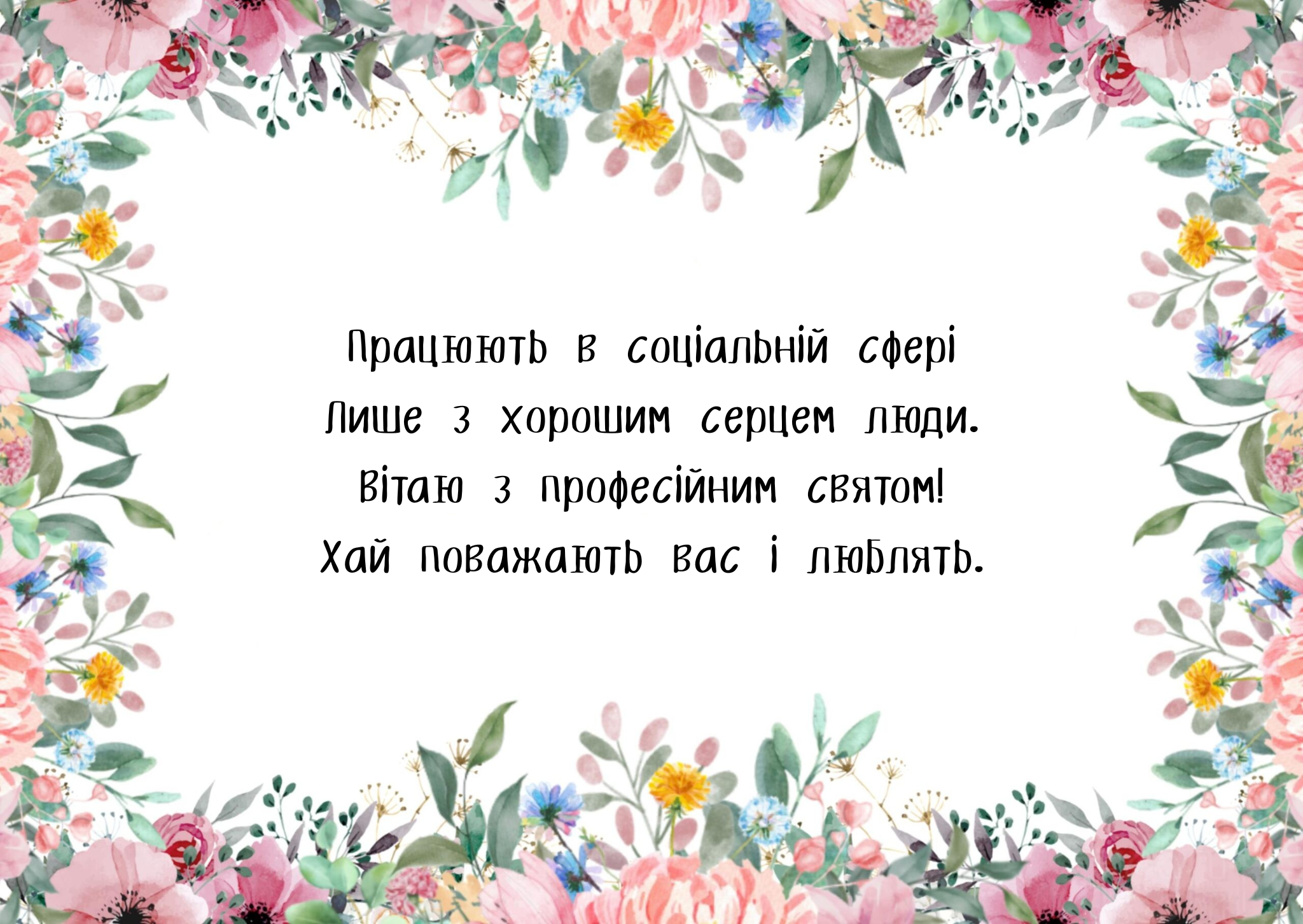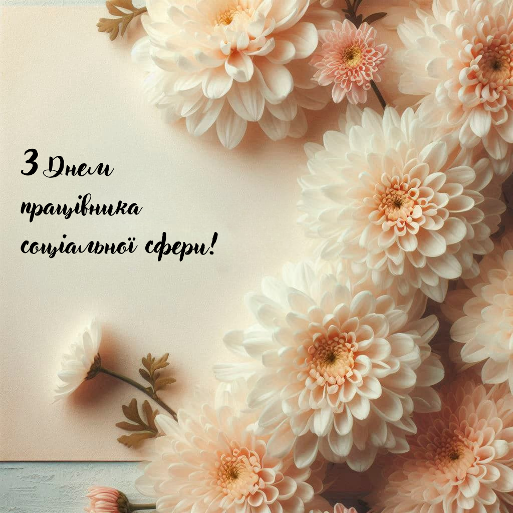 З Днем працівника соціальної сфери! Ваша праця — це місія добра і милосердя. Дякуємо за Ваше велике серце і невтомну роботу! Здоров'я, терпіння, успіхів та щастя! Зі святом!