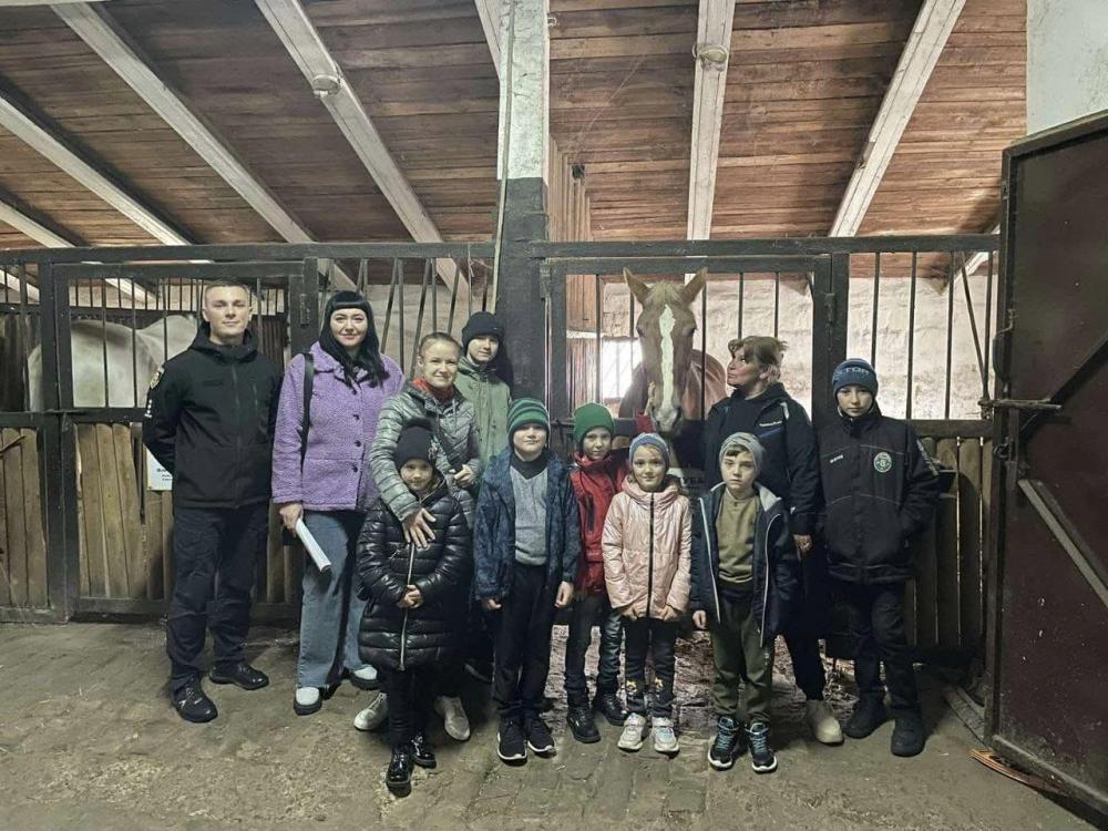 Під наглядом поліцейського офіцера громади провели екскурсію іподромом, що знаходиться на території громади. Працівники клубу познайомили дітей з дорослими кіньми. Вони побували в стайнях, де живуть поні і погодували їх. А також пройшли майстер-клас з їхнього догляду.