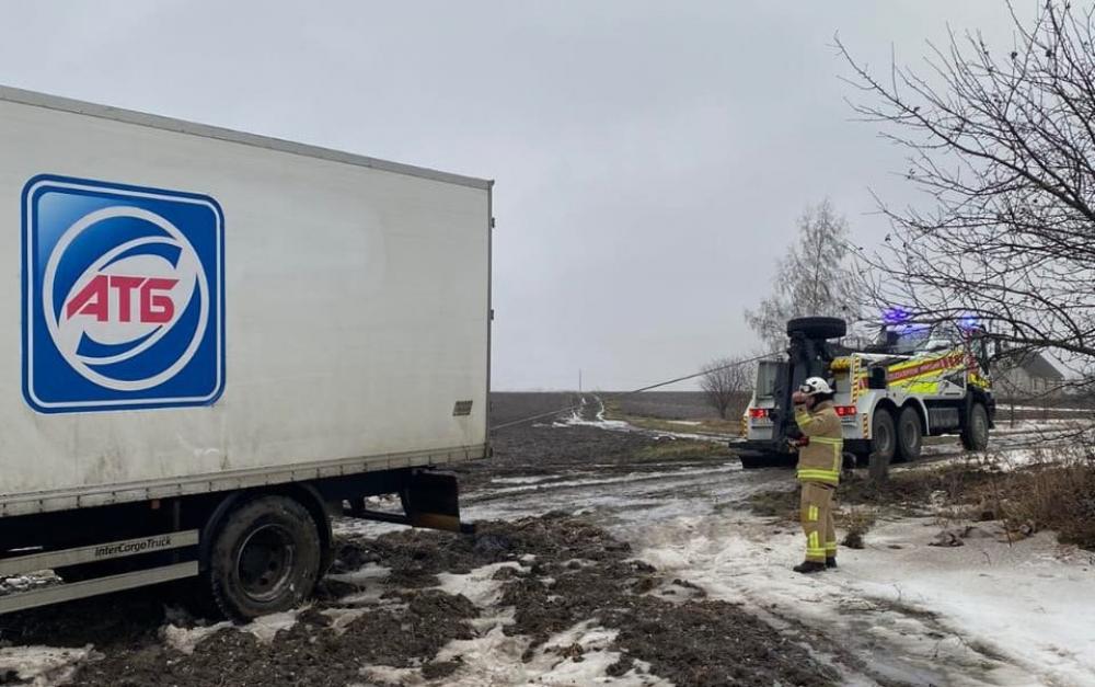 У Рівненському районі рятувальники надали допомогу по буксируванню вантажного автомобіля, який застряг на ґрунтовій дорозі.