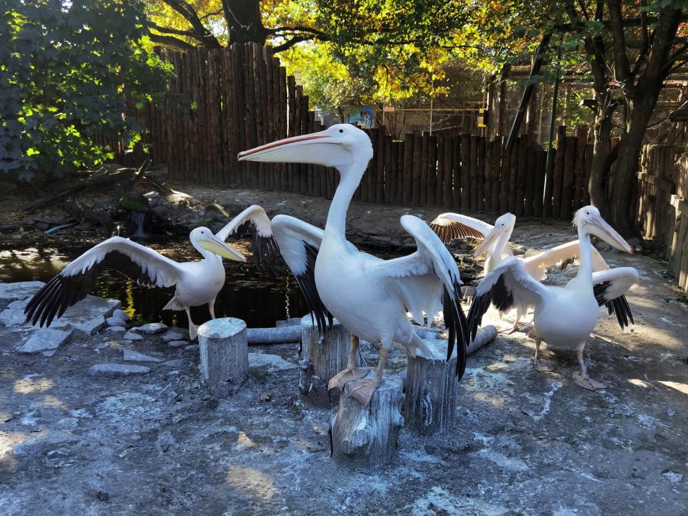 Справжні зірки Рівненського зоопарку – це рожеві пелікани, одні з найбільших птахів України.