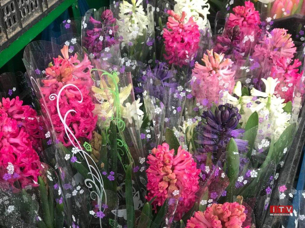 Гіацинти також активно купують до свята, розповідають продавці. У квіткових горщиках їхня ціна стартує від 60 гривень, однак можна придбати і за 80. Усе залежить від довжини квітки.