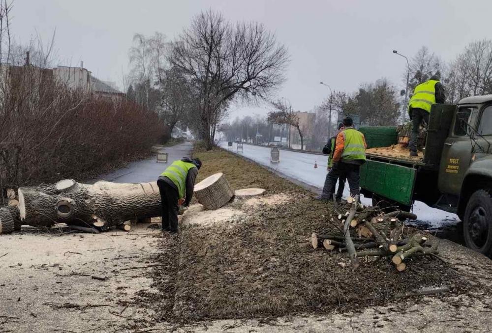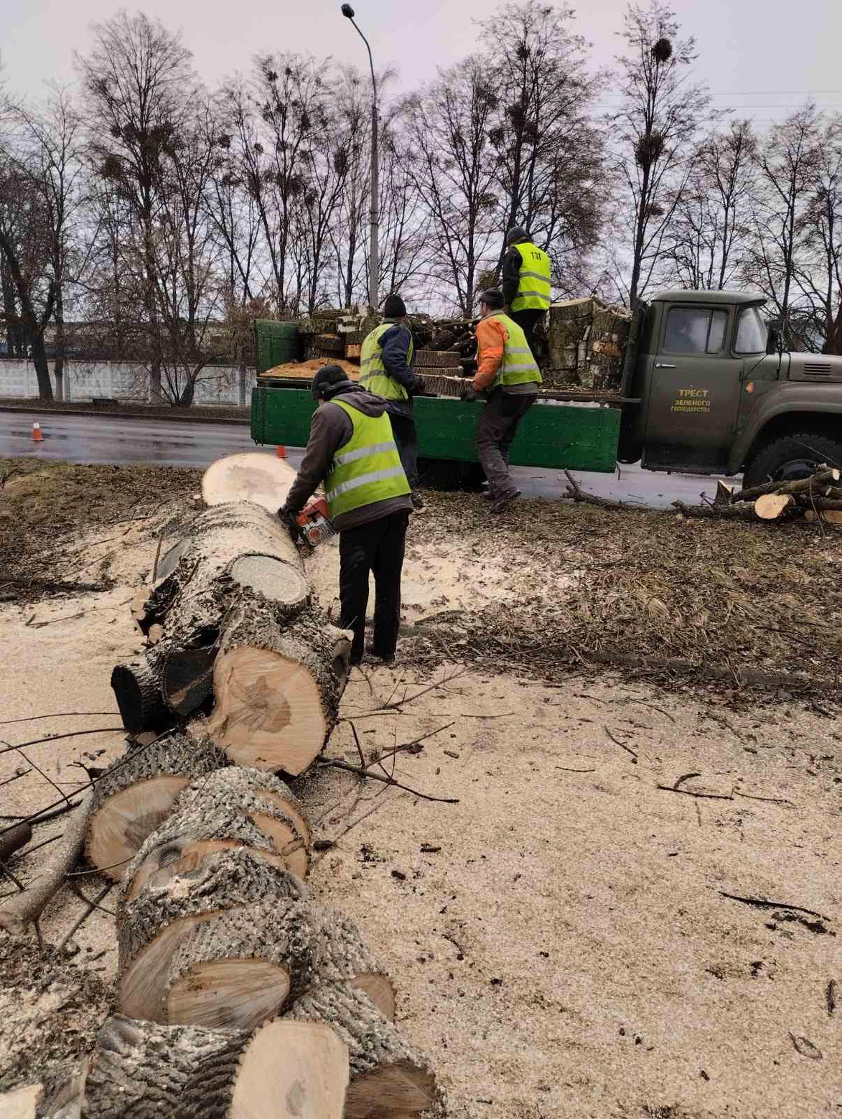 У Рівному працівники Тресту зеленого господарства по місту зрізають аварійні дерева.