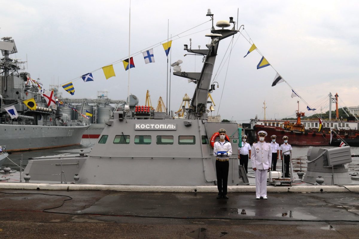 У Міноборони зазначили, що в Одесі пройшла офіційна церемонія, де командувач ВМС ЗС України контр-адмірал Олексій Неїжпапа вручив екіпажу катера Прапор Військово-Морських Сил ЗС України. Після цього за встановленою процедурою цей стяг та прапори розцвічування підняли на катері «Костопіль».
