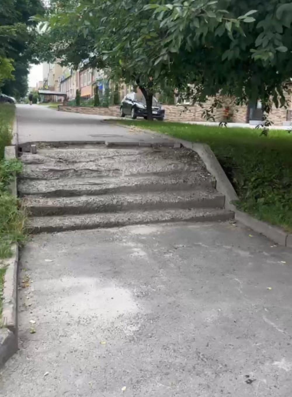 "По закінченню робіт тут будуть міцні та рівні бетонні сходи. Для безпеки та попередження доступу під час висихання бетону,місце проведення робіт обгороджено сигнальною стрічкою", - зазначили у міськШЕУ.