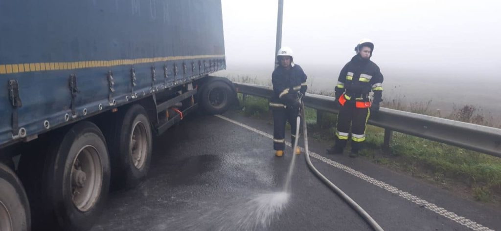 25 жовтня, зранку, на гарячу лінію «101» надійшло повідомлення про те, що на трасі Київ-Чоп (біля готелю Софія) сталася ДТП. Внаслідок якої вантажний автомобіль марки DAF частково перекрив рух транспорту на трасі. Крім цього, відбувся витік пального та існувала загроза загорання.