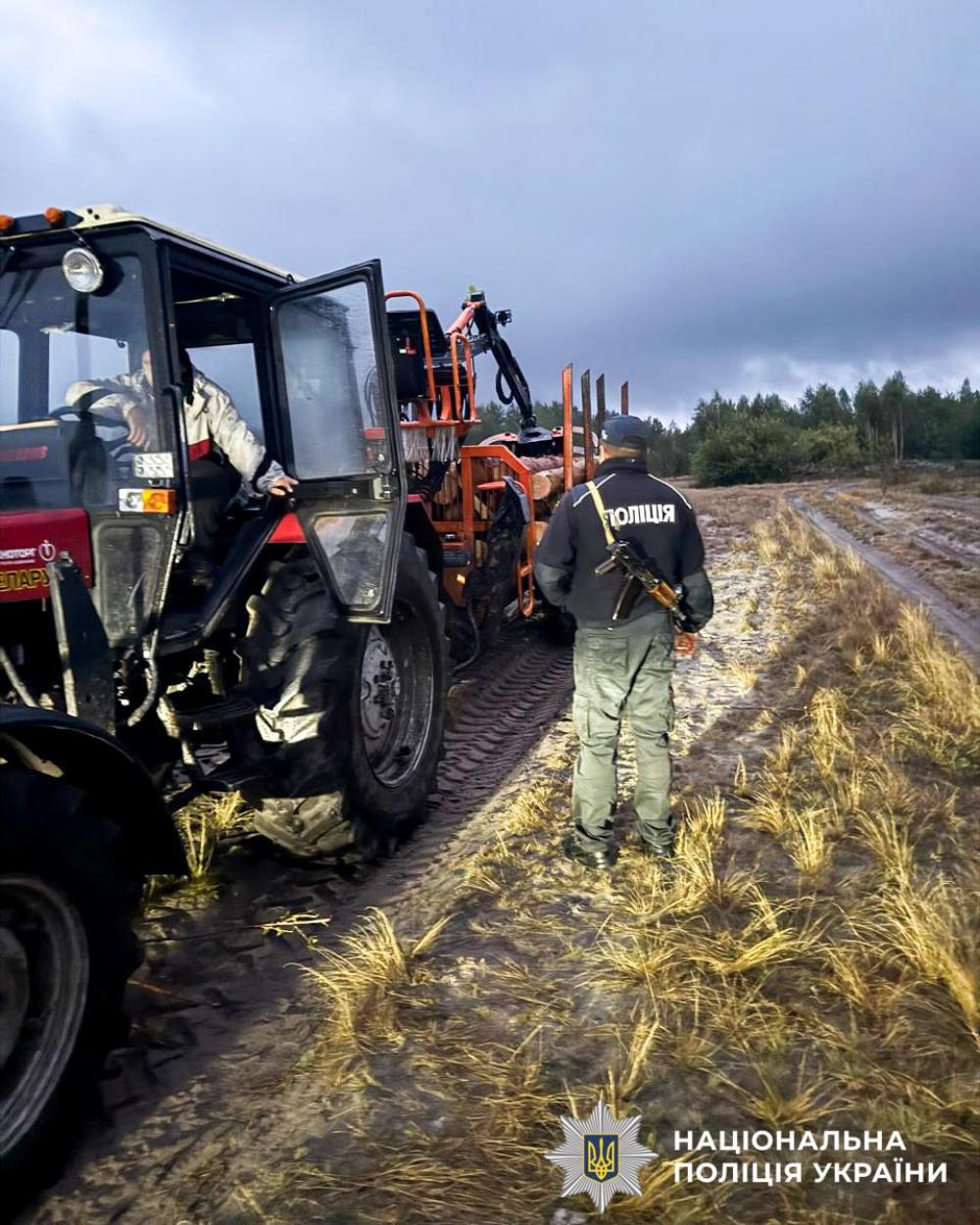 Також поліцейські у селі Зелень, Дубровицької міськгромади на території Висоцького надлісництва зупинили трактор «Беларус», керманич якого, 24-річний житель села Сварицевичі у напівпричепі перевозив лісопродукцію.