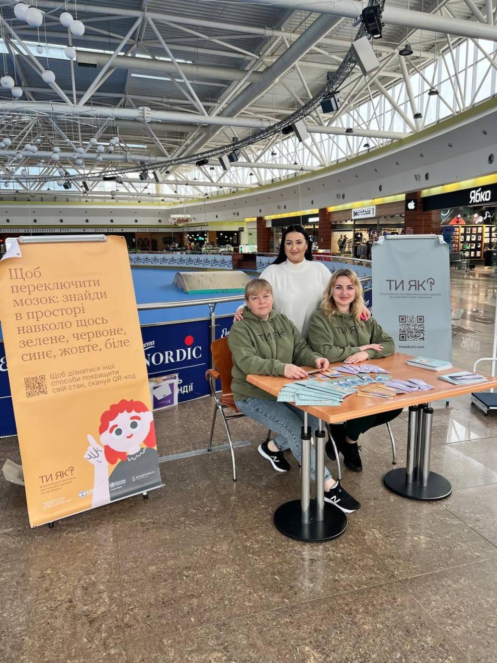 Також для відвідувачів торговельного центру фахівці розповіли, що таке ментальне здоров'я, про маршрут пацієнта із розладами ментального здоров’я, як звернутися за консультацією до лікаря-психолога. Дали поради щодо технік самодопомоги у стресових ситуаціях, поділилися матеріалами про ментальне здоров’я та як його зберегти.
