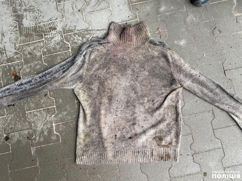 Був одягнений у светр сірого кольору, кофту з візерунком «квадрат», футболку, штани, кросівки 41 розміру, нижню білизну, шкарпетки — все чорного кольору.