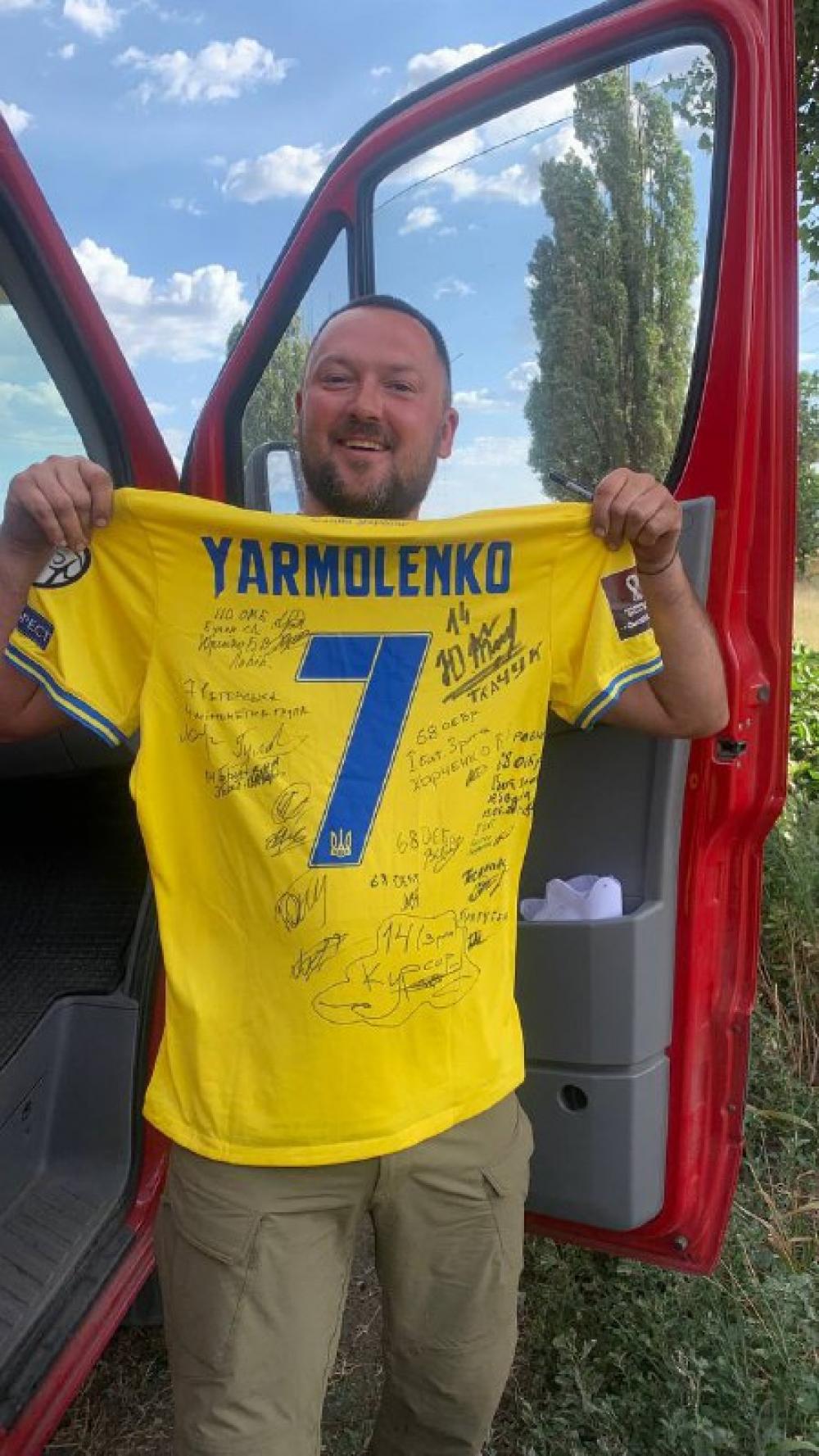 Також, капітан команди української збірної Андрія Ярмоленка передав для бійців ЗСУ свою футболку, яку підписали усі гравці збірної. Нещодавно, збірна України перемогла у матчі кваліфікації чемпіонату світу-2022 проти Шотландії – 3:1.