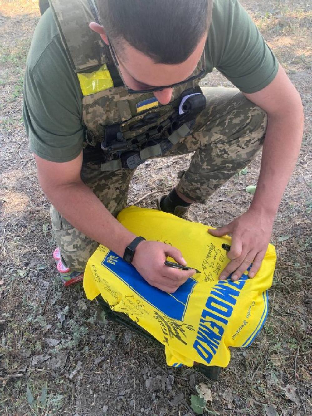 «Домовилися, що наші бійці залишать свої автографи на іншій стороні футболки. Вона буде знаходитися у Музеї футбольного клуба «Динамо», — каже волонтер.