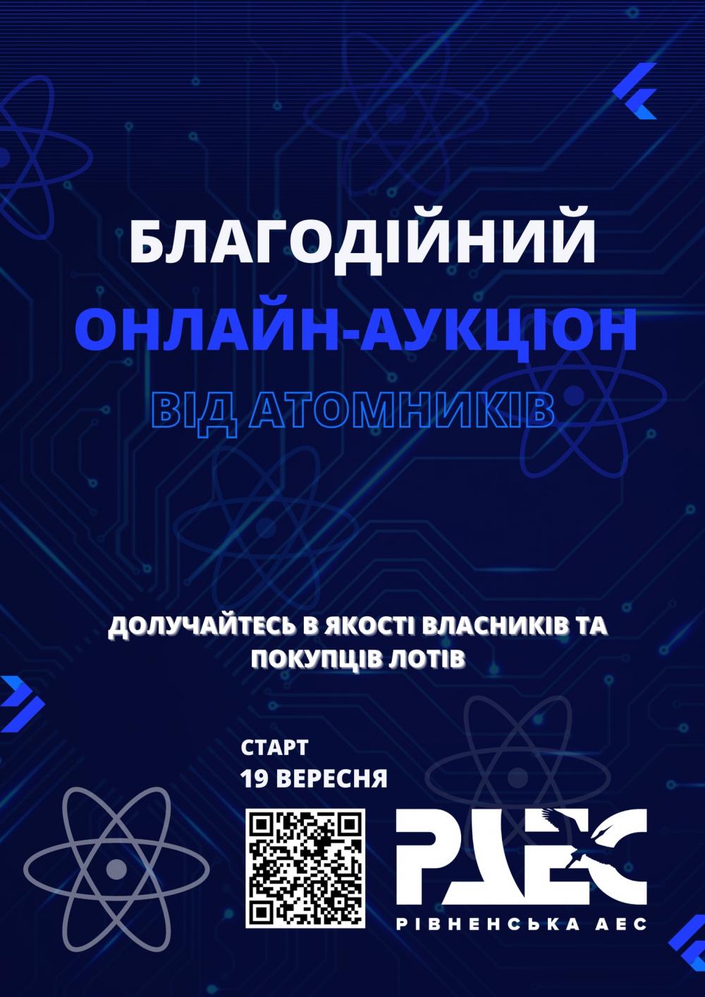 19 вересня стартує Благодійний аукціон від атомників.Його метою є зібрати якомога більше коштів з продажу лотів та спрямувати їх на потреби Збройних Сил України.