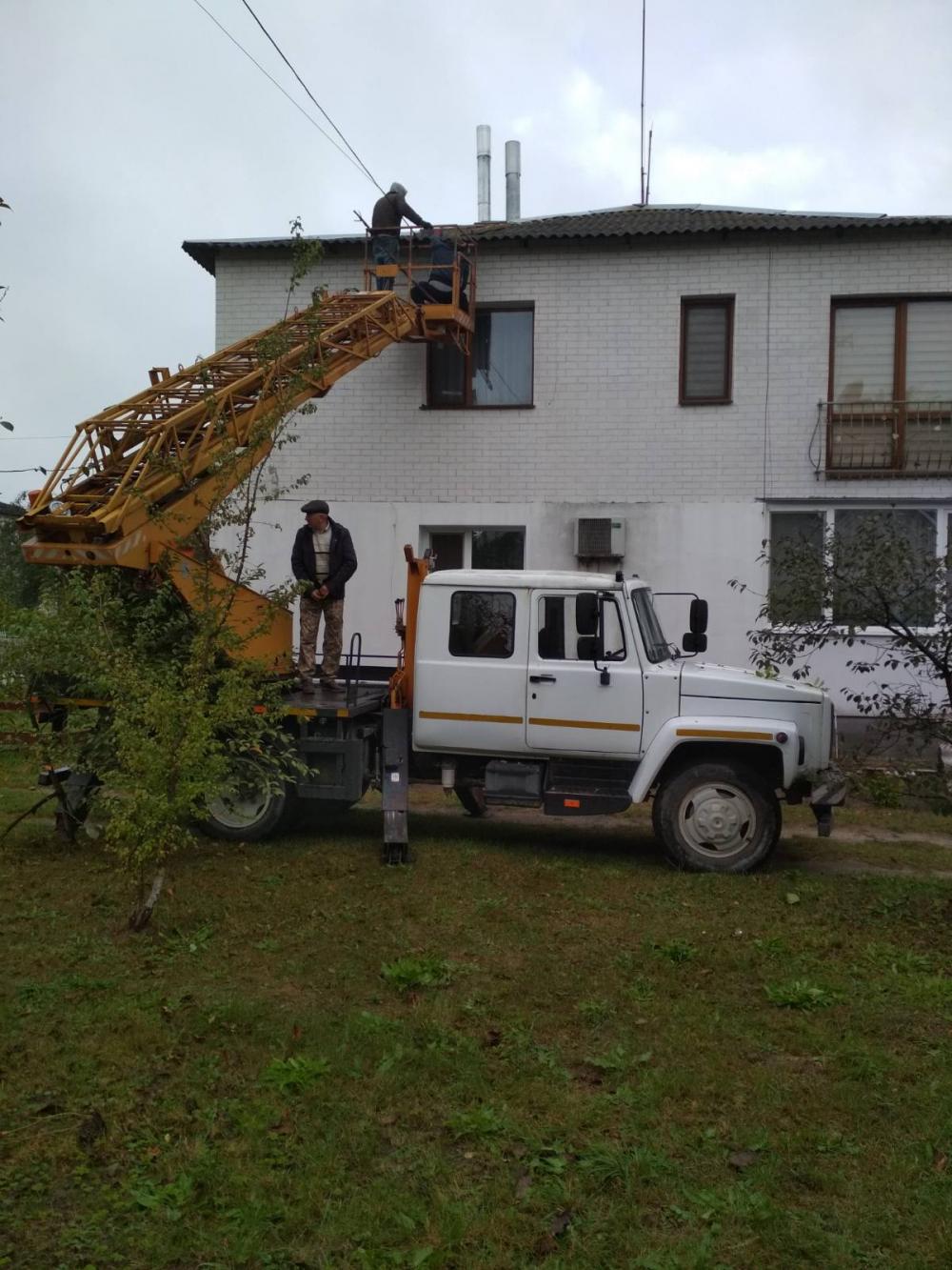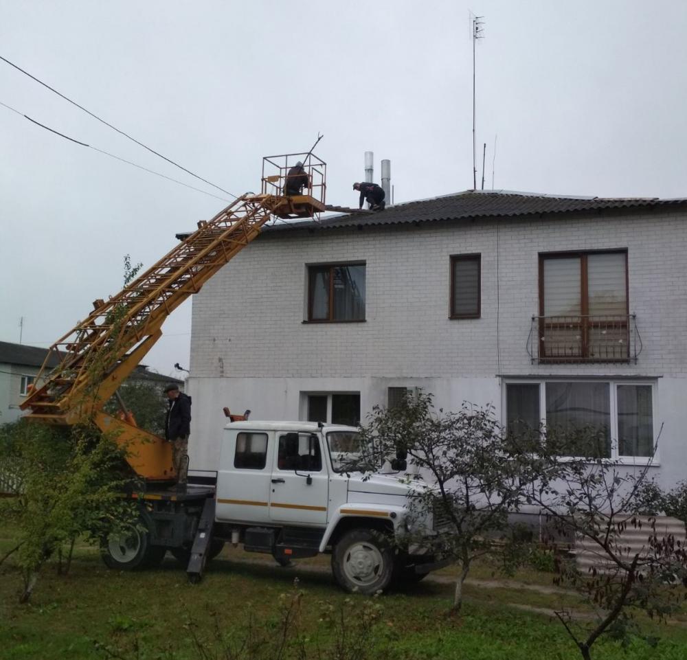 За допомогою автовишки працівниками підприємства було проведено поточний ремонт покрівлі.