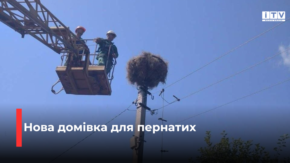 Електромонтери встановили спеціальну безпечну металеву платформу для нового гнізда на звичному місці — електроопорі. А ще зібрали залишки зруйнованого гнізда, аби створити для лелек знайомі, звичні умови.