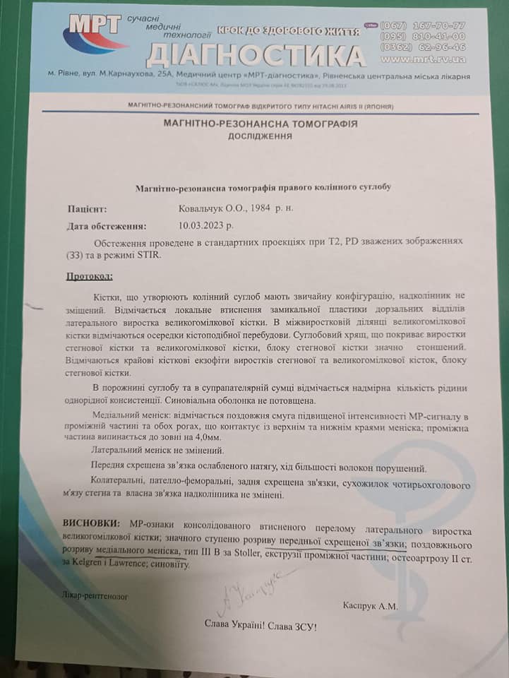 Старший солдат із села Синів, що на Гощанщині, Олександр Ковальчук потребує термінової операції із заміни колінного суглобу.