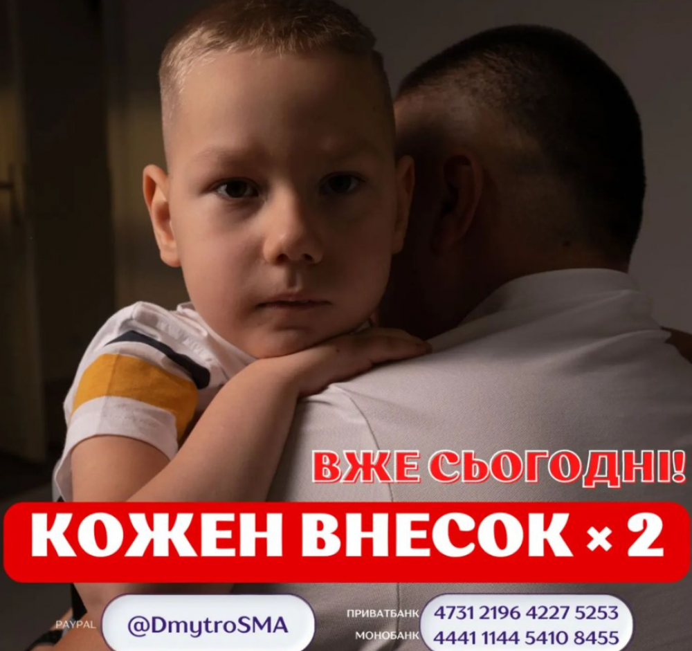 Батько Дмитрика захищав Україну з 2016 року, ветеран АТО. маленький українець народився абсолютно здоровим хлопчиком. Утім, в 6 місяців батьки помітили, що синочок не встає на ніжки не перевертається сам. Масажі та розвивальна реабілітація не допомогли. Генетичний аналіз шокував. У Дмитрика виявили вроджену спінально-мязову атрофію. З того часу почалася боротьба за кожен рух та подих дитини.