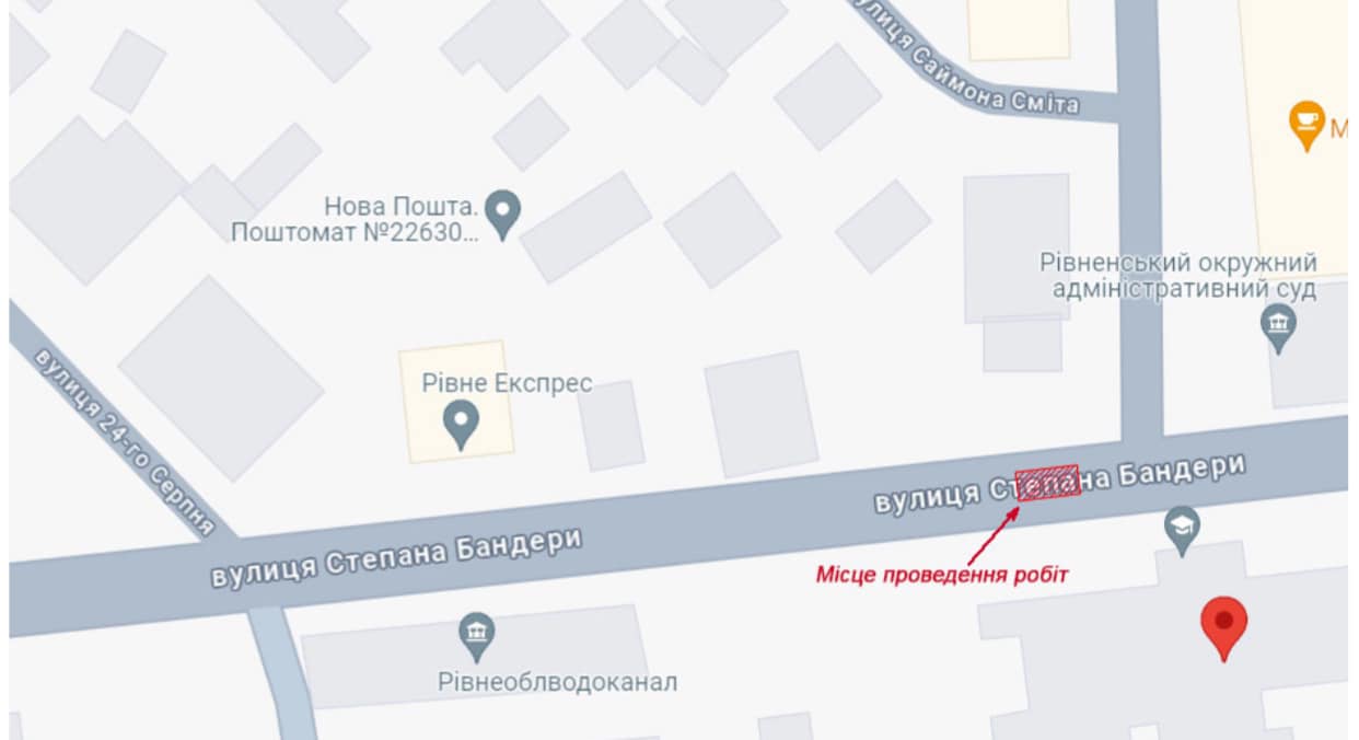 У зв'язку з виконанням ремонтних робіт біля Рівненського музичного училища на перехресті Степана Бандери – 24 Серпня та Степана Бандери – 16 Липня частково обмежать рух транспорту.