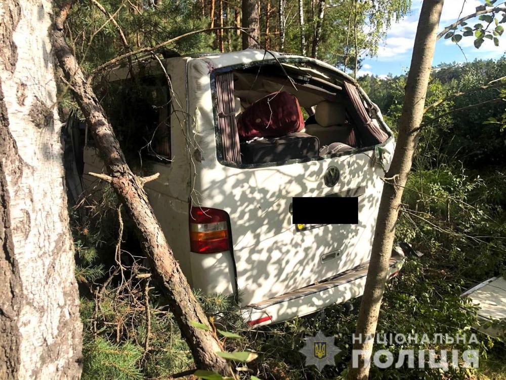 Поліцейські встановили, що через пошкодження колеса у транспортному засобі «Volkswagen Transporter» його 48-річна водійка не впоралася із керуванням та з’їхала в кювет, де авто перекинулось.