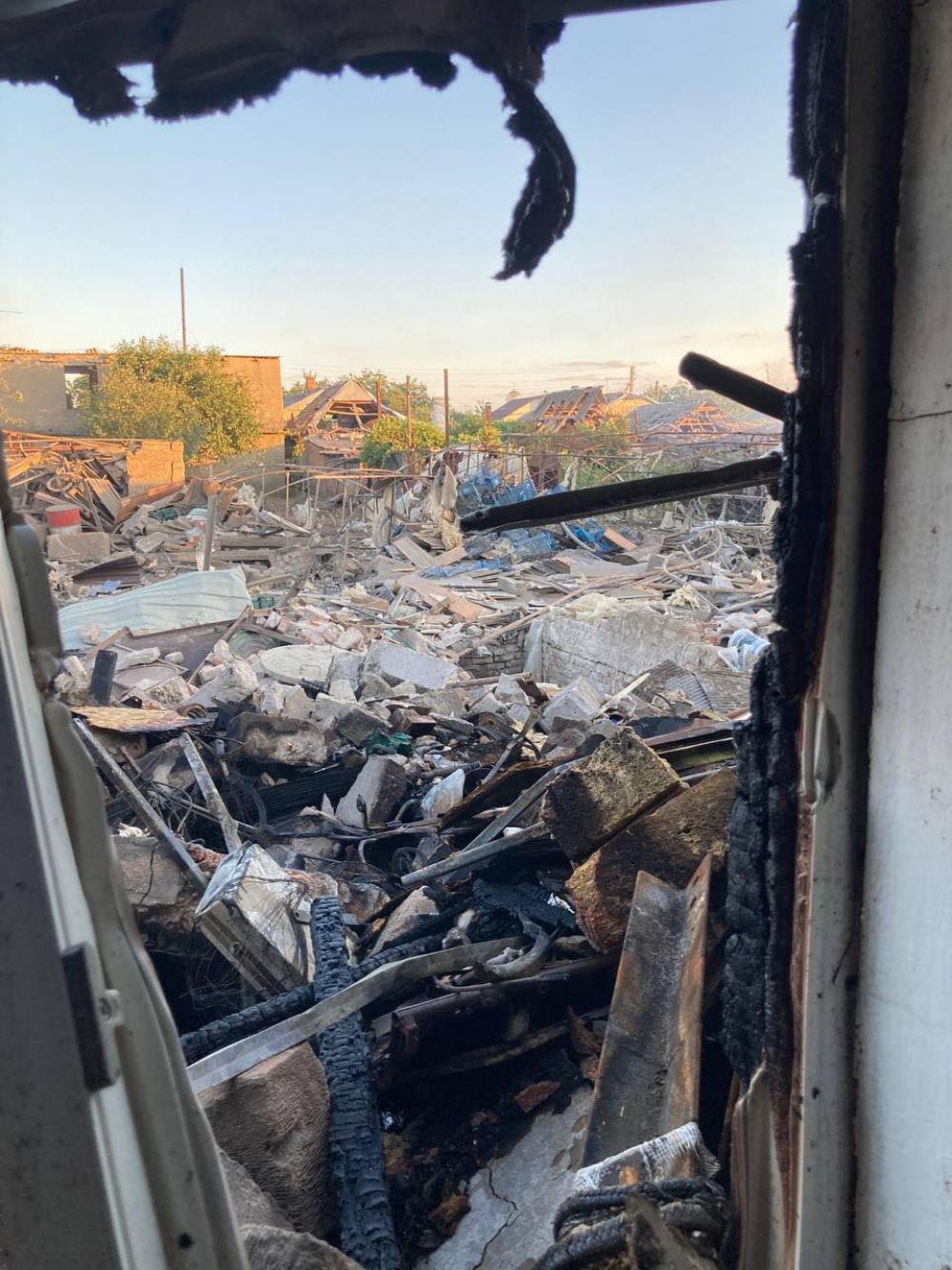 «Навкруги палав вогонь. Дах будинку був повністю зруйнований. Стелю вибуховою хвилею відірвало від стін, підкинуло і відсунуло у бік. Сильно побило стіни, хоч деякі з них встояли. Повибивало вікна-двері, а деякі будівельні конструкції і речі порозліталися по сусідських ділянках на десятки метрів», - каже Василь Платонович.