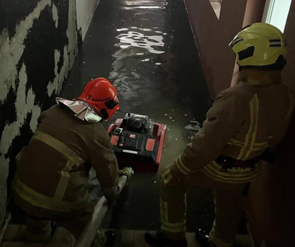 Так рятувальники відкачували воду з цокольного поверху будівлі на Данила Галицького.