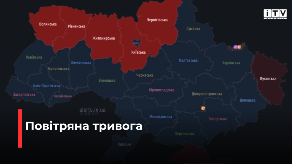 Окрім Рівненської, ракетна небезпека через балістику оголошана також у Волинській, Житомирській, Київській та Чернігівській областях.