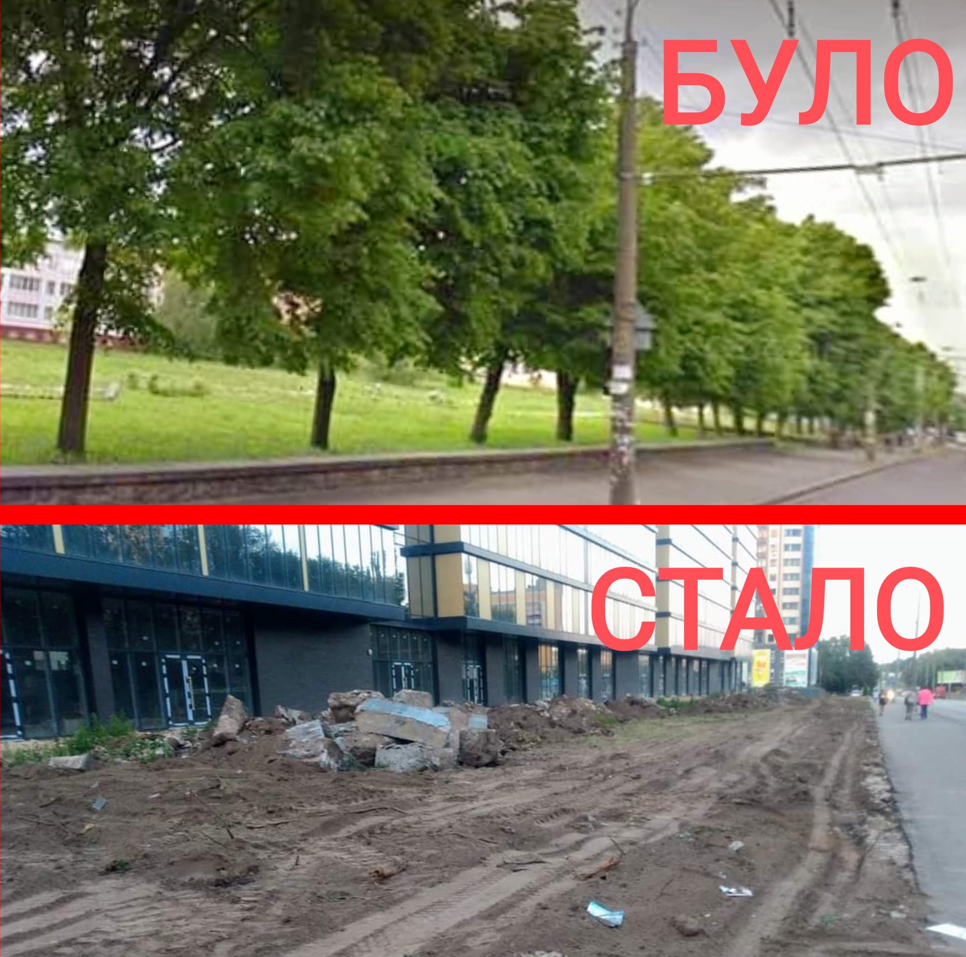 На вулиці Київській поблизу будівництва одного із торгових центрів зрізали ряд лип. Це викликало неабияке обурення серед жителів міста.