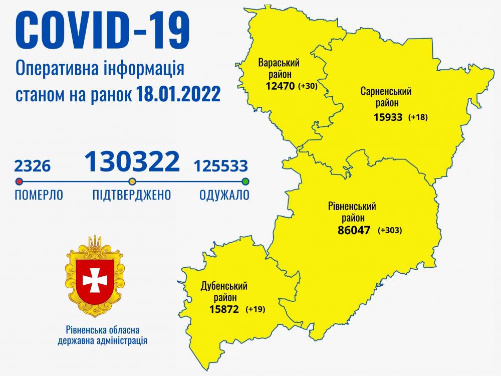 В області зареєстровано 2326 летальних випадків спричинених COVID-19. Померли 65-річна жителька с.Заболоття Вараського району, 61-річна смт Томашгород, 62-річна жителька с. Коблин Дубенського району, 79-річна жителька м. Корець, 80-річна жителька с. Пісків, 86-річна жителька с. Ставок Рівненського району, 78-річний житель м. Рівне.
