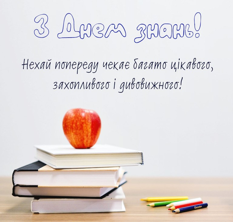 Вітаю з Днем знань! Нехай цей рік почнеться вдало і проходить успішно, нехай кожен день знаменується нехай навіть і маленькою, але перемогою, нехай отримані знання і навички відкривають перед тобою нові двері до мрій, інтересів і рекордів.