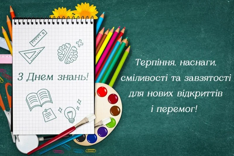 З Днем знань! Нехай будуть підвладні всі шкільні та життєві завдання, а допитливість і захопленість ведуть тебе до нових радісних відкриттів. Бажаю цікавих уроків, відмінних оцінок і великих перемог.
