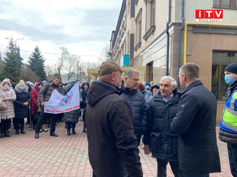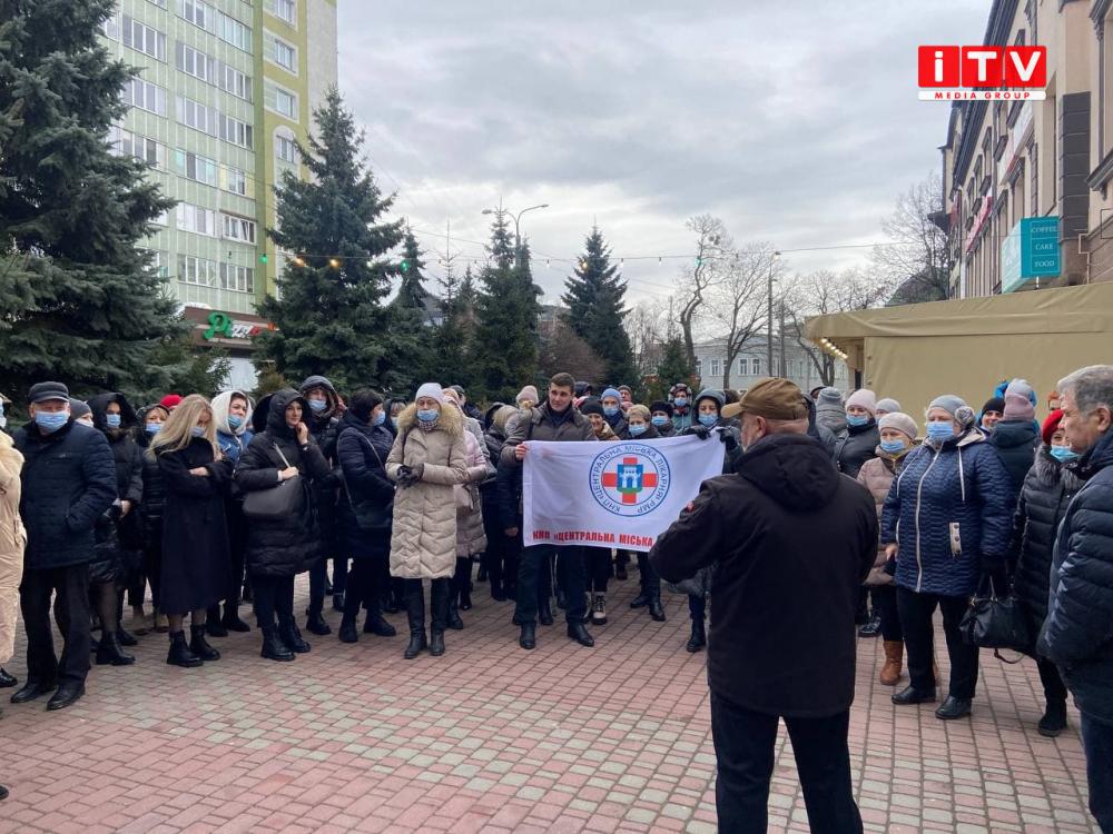 За словами пікетувальників, у час пандемії й війни не потрібно змінювати керівника закладу. Тому вимагають, аби депутати дозволили працювати Євгену Кучеруку на посаді головного лікаря доти, доки йому дозволятиме здоров'я, і він сам подякує колективу й піде на відпочинок.