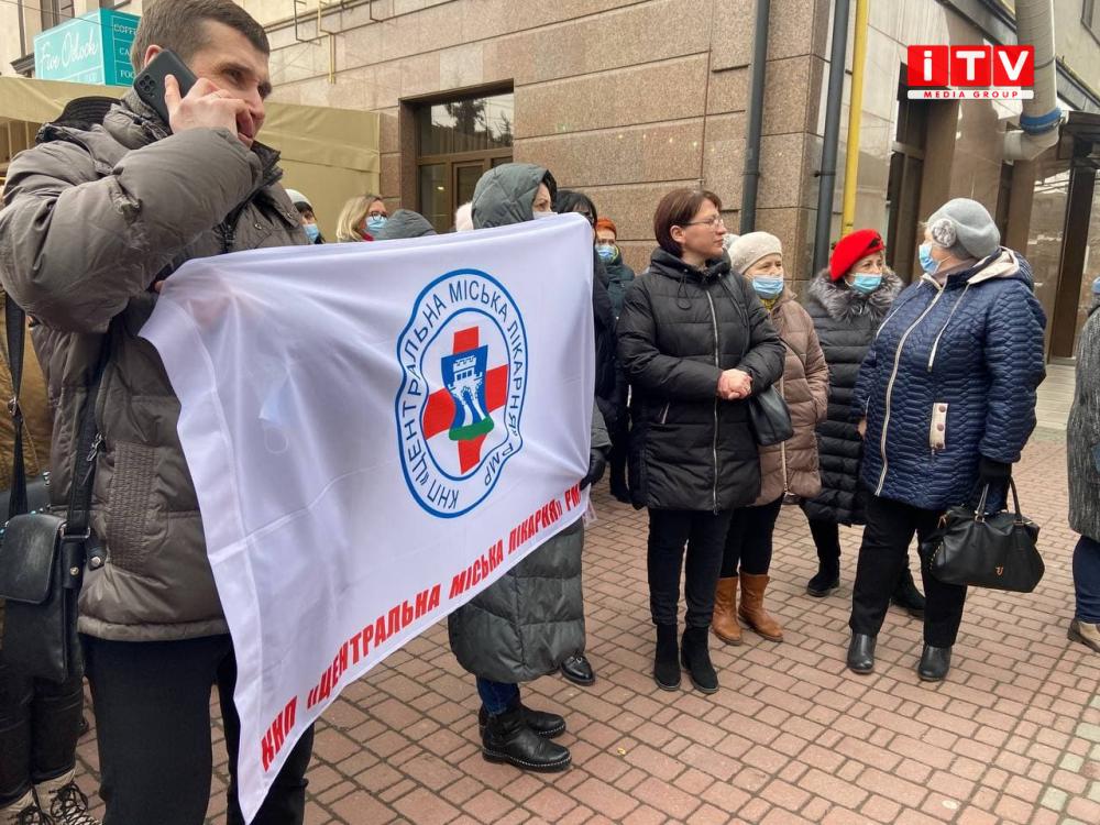 Під стіни Рівненської міської ради прийшли медики.