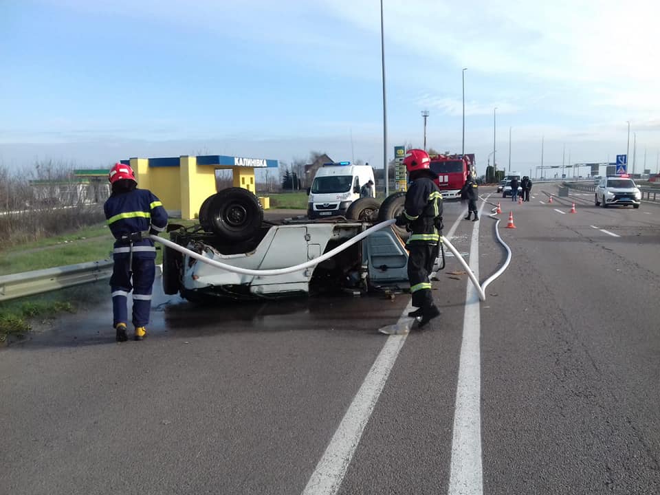 На місці автопригоди рятувальники побачили перекинутий на дах автомобіль марки УАЗ. Вогнеборці змили паливно-мастильні матеріали з проїжджої частини дороги, відключили клеми акамуляторних батарей та за допомогою пожежної автоцистерни перевернули УАЗ на колеса. Постраждав водій УАЗа. Його доставлено до лікарні.