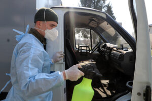 По прибуттю в частину у всіх заміряється температура та дезінфікують руки та взуття, проводять опитування на стан здоров’я. Окрему обробку проходить і транспорт, який заїжджає на територію частини.
