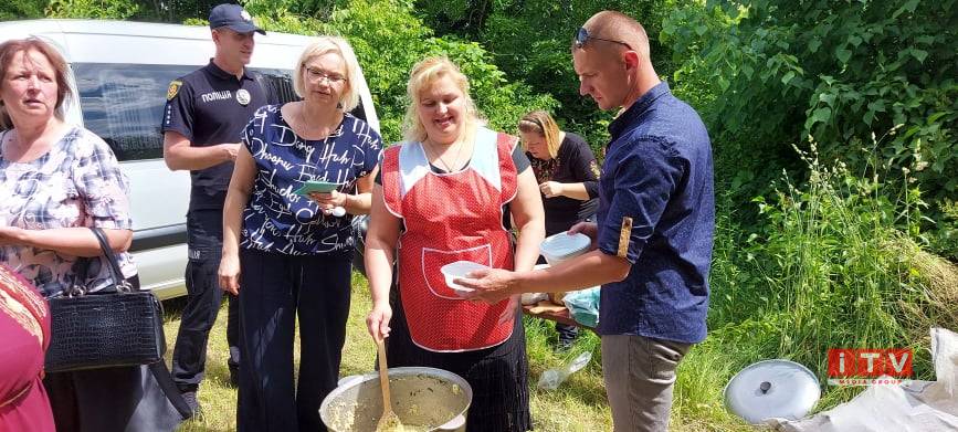 У цей день брати Капранови презентували книгу у селі Сухівці. Їдемо відразу туди, щоб подивитися чи все в порядку. Захід відбувається на свіжому повітрі біля пам’ятника Нілу Хасевичу. Усіх присутніх годують приготованим на вогні кулішем з маслом і шкварками. Нам з дільничними одразу пропонують скуштувати.