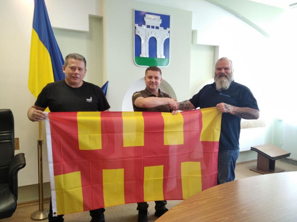 "Карл Крюгер та Саймон Бернідж приїхали до Рівного з англійського міста Морпед.Саймон відзначив, що серед гербів міст-побратимів Рівного немає жодного з Британії. Він подарував мені прапор його рідного міста з надією на дружбу попри кордони", - йдеться у повідомленні.