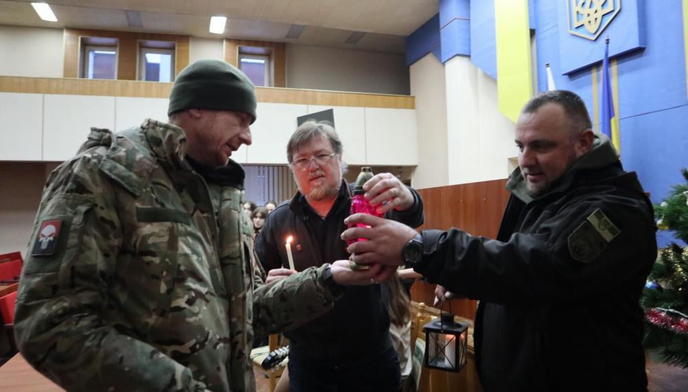 Своєю чергою очільник громади передав вогонь миру волонтерам Вараської громади, які доправлять символічне полум'я на передову до захисників.