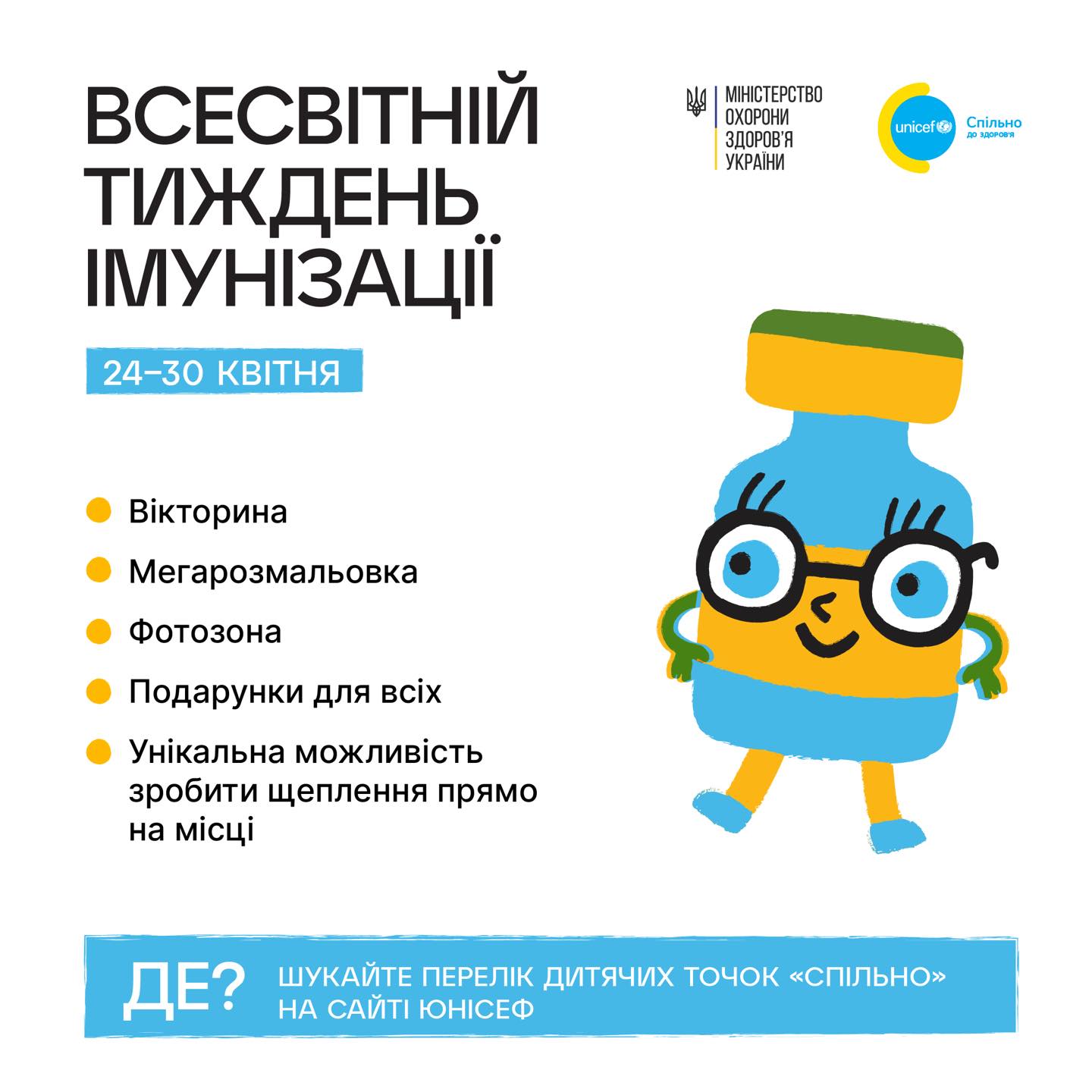 Перевірити, чи завітав Всесвітній тиждень імунізації на найближчу до вас дитячу точку «Спільно» ЮНІСЕФ можна за посиланням.