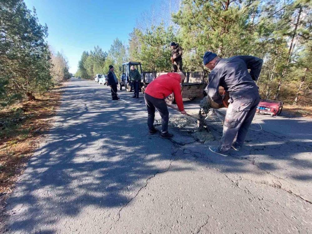 Від села Глинне до Рокитного місцеві жителі самотужки ремонтували дорогу. Їм допомагали військові, які прийшли у відпустку.
