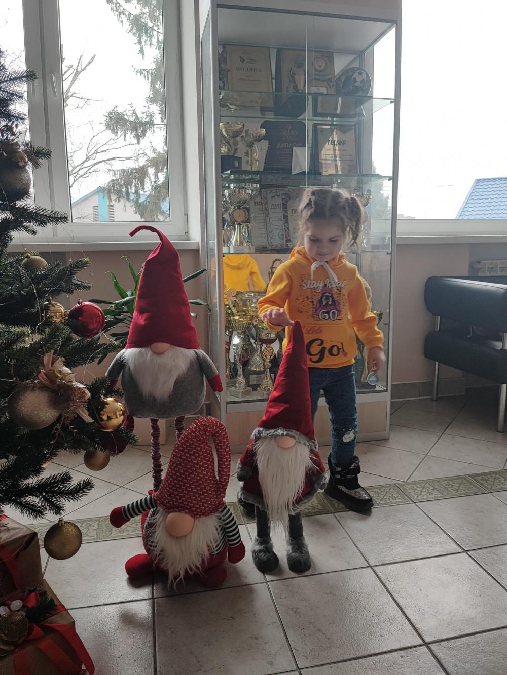 «Соломійка випромінює тепло і щирість – вона бавилася біля новорічної красуні у холі підприємства, роздивлялася чарівних різдвяних гномів і уявляла, що їхня дружня родина зібралася біля ялинки з подарунками від Святого Миколая», — пишуть на Фейсбук-сторінці Рівнеобленерго.