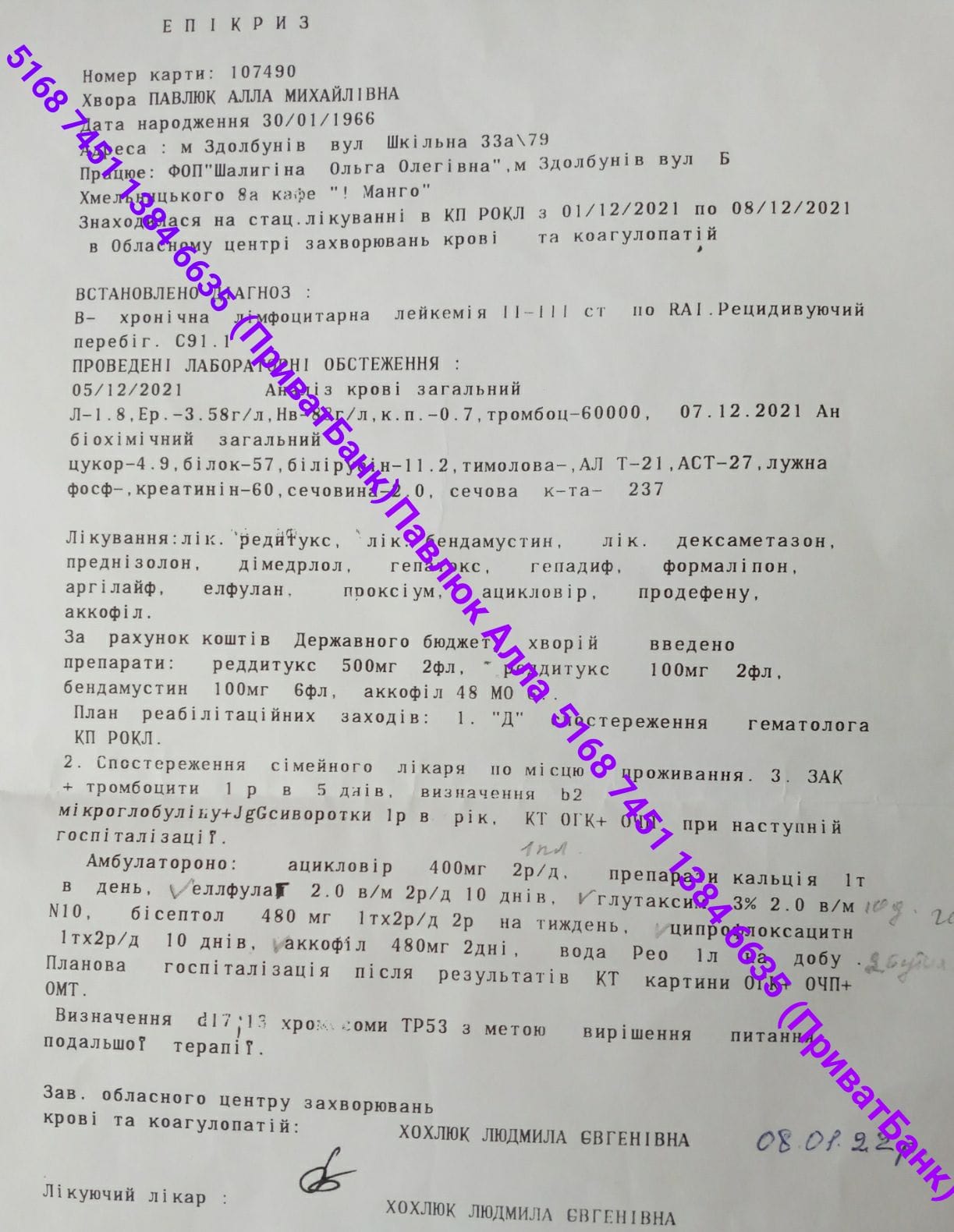 Алла Павлюк зі Здолбунова вже п'ять років бореться страшною хворобою - лімфоцитарна лейкемія. Про це повідомила її сестра Людмила Бовчун.