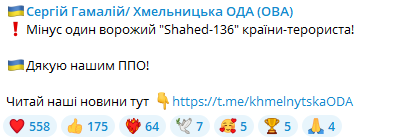 Про це повідомив голова Хмельницької ОДА Сергій Гамалій.