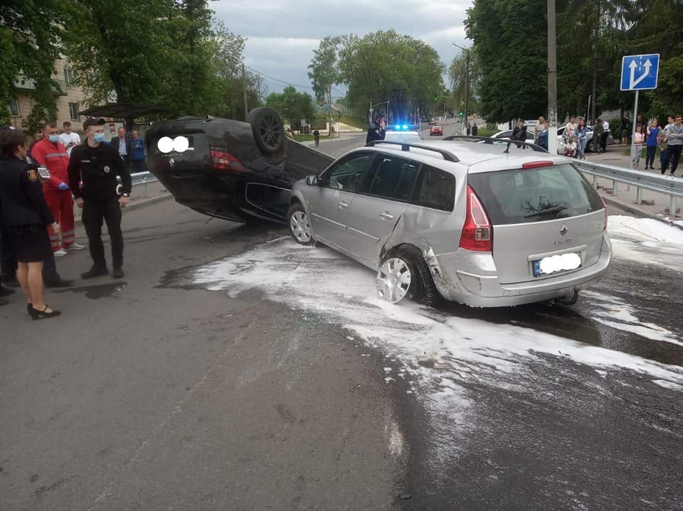 На місці рятувальники побачили, що автопригода трапилася за участю двох легкових автомобілів марок "Renault Megane" та "Renault Laguna". Один з автомобілів від сильного удару перекинуло на дах.