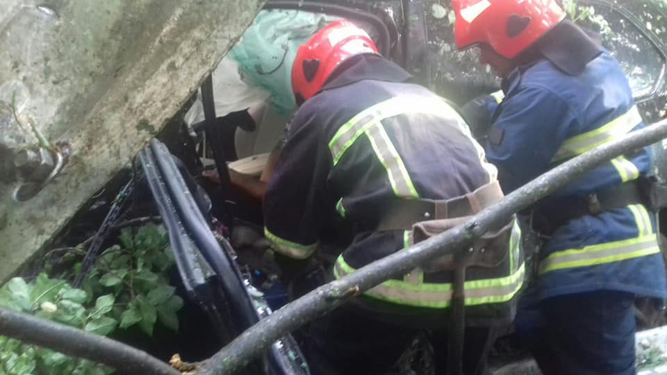Прибувши за вказаною адресою рятувальники побачили автомобіль марки BMW X5 котрий, з'їхавши з дороги, протаранив металевий відбійник та в'їхав приблизно на метрів п'ятдесят у лісосмугу, протягнувши за собою відбійник.