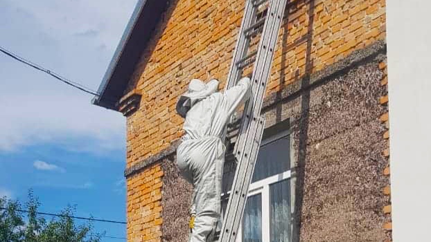 Рятувальники у захисному костюмі по висувній пожежній драбині дісталися до горища та за допомогою спеціального хімічного розчину знешкодили гніздно. До слова, у житловому будинку проживає чотири сім'ї, де є кілька малолітніх дітей. Тому батьки переживаючи за малечу звернулися до рятувальників по допомогу.