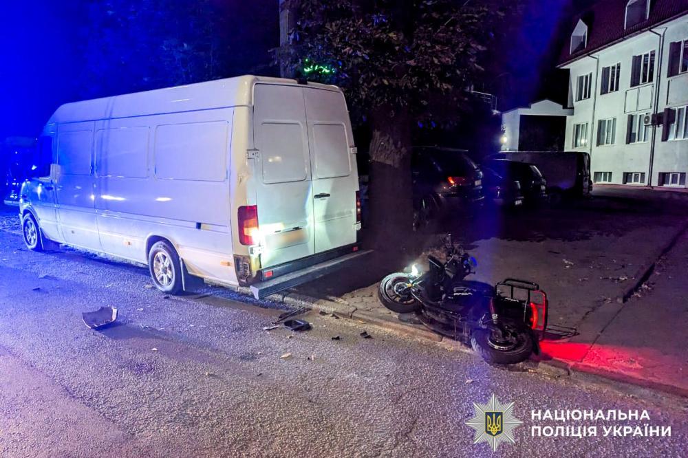 Крім того, сьогодні, 8 вересня, опівночі на вулиці Грушевського 17-річний житель Рівного, керуючи електровелосипедом, в’їхав у припаркований мікроавтобус «Volkswagen». У пасажирки велосипеда, 16-річної рівнянки діагностували політравму та госпіталізували до реанімації.