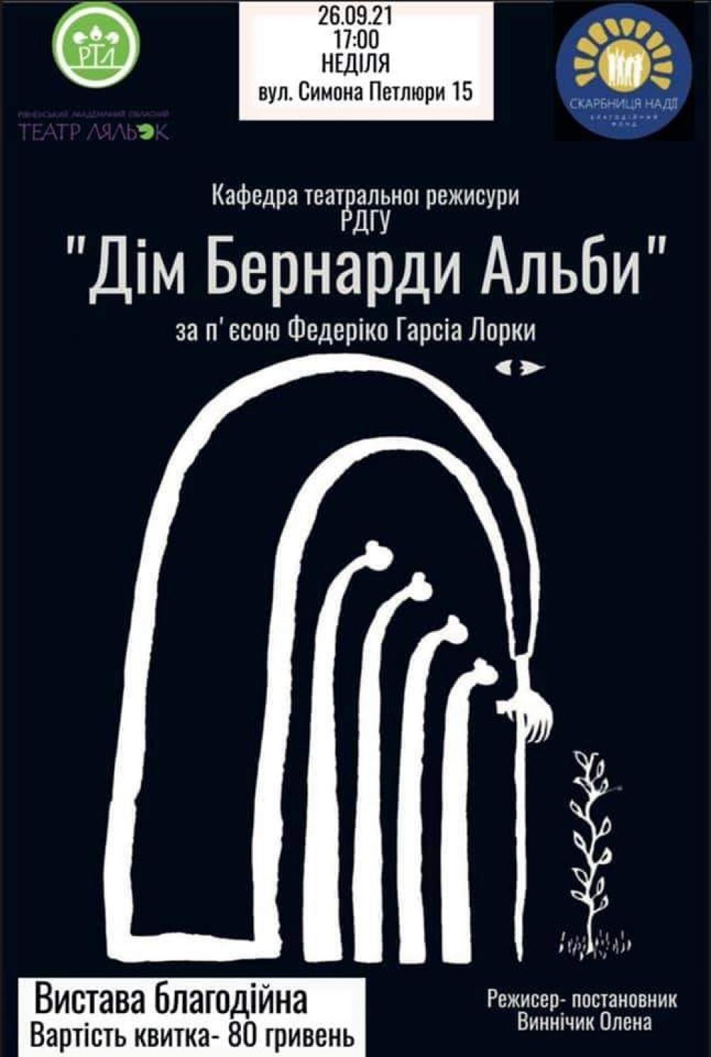Вчора ми анонсували благодійну виставу. Всі кошти за квитки, а також зі скриньки, яка буде в холі театру ляльок будуть зібрані для Олічки. Приходьте! Чекаємо на вас!",- пише на своїй сторінці у Facebook Голова правління БФ “Скарбниця Надії” Мар'яна Рева.
