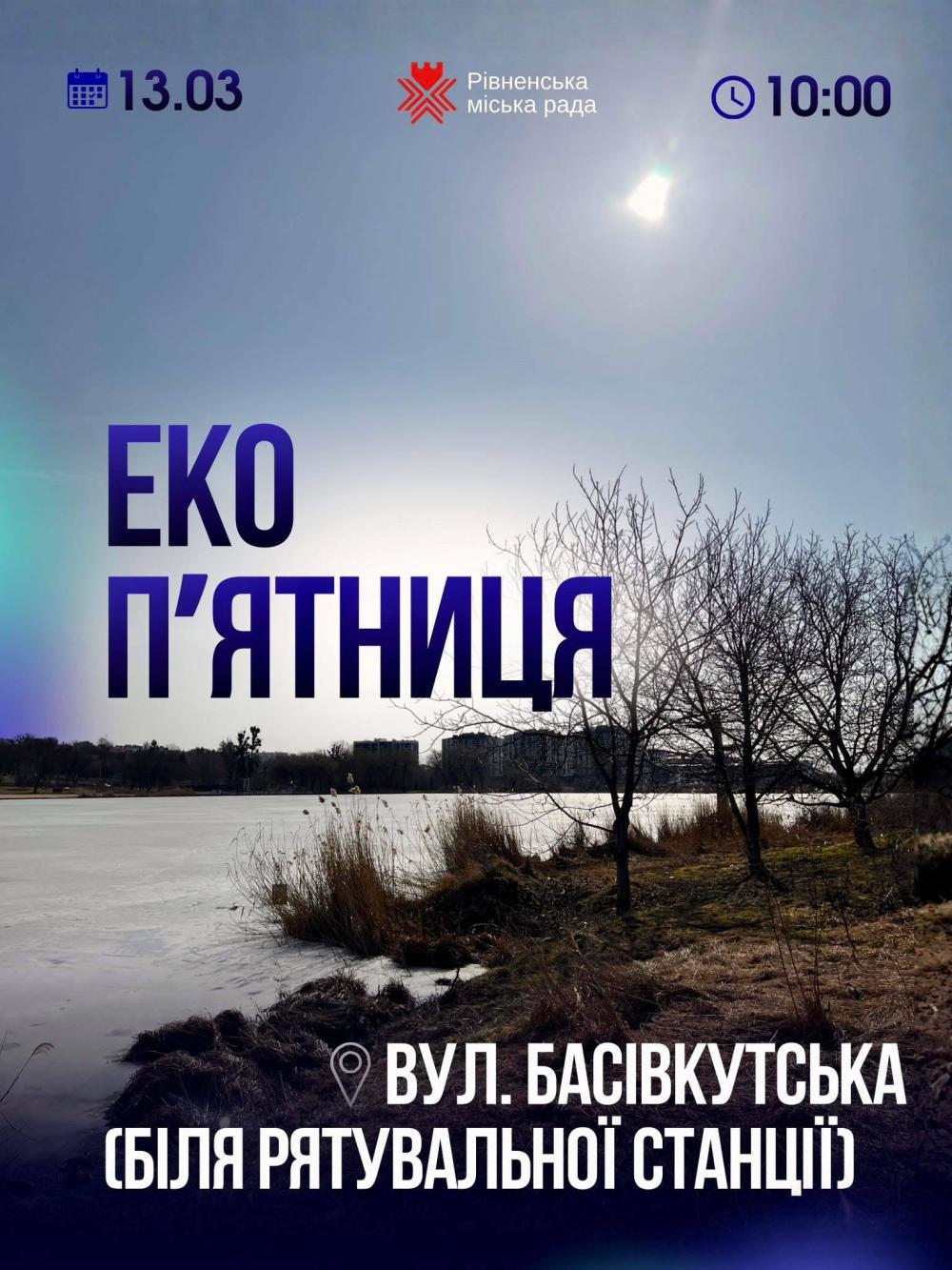 Завтра, 13 березня, о 10:00, у Рівному на вулиці Басівкутській (біля рятувальної станції) відбудеться прибирання прилеглої території в межах екологічної ініціативи «Еко-п’ятниця».
