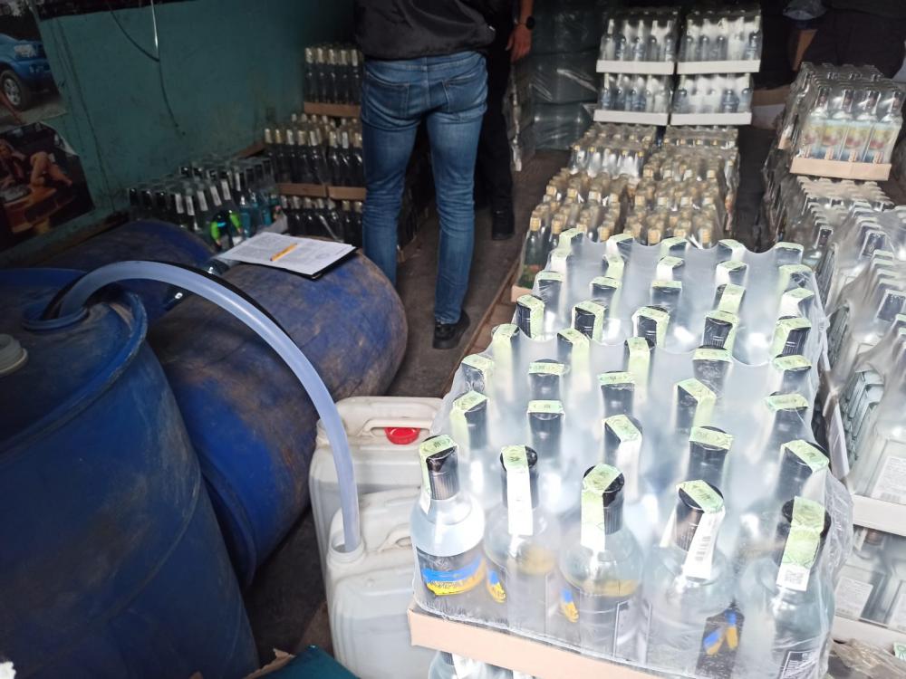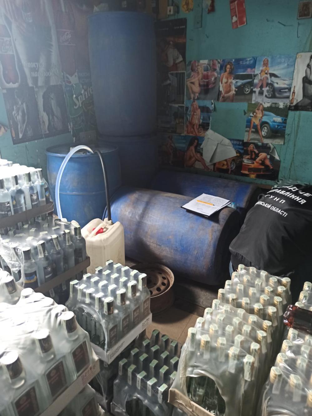 В ході санкціонованих обшуків в авто та у приміщеннях гаражів, якими користувався зловмисник, виявлено та вилучено близько 5 тисяч пляшок сурогатного алкоголю, в різній тарі та з різними назвами. Частина з них – у вигляді сировини у бочках, інша частина – вже розлита у пляшки, запакована у ящики і підготовлена до продажу. Загалом це було б майже 250 ящиків алкоголю.