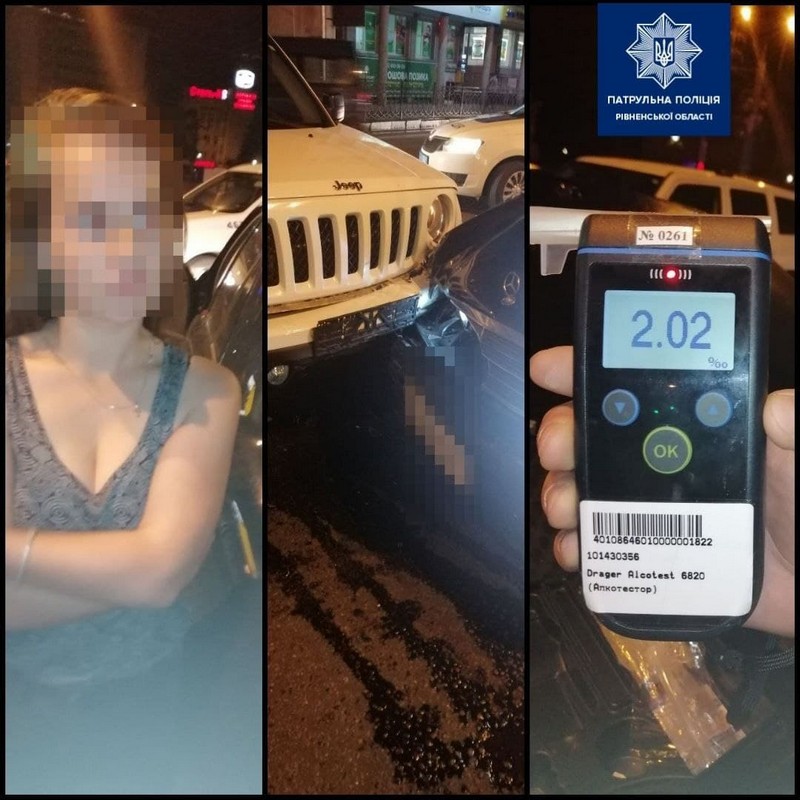 Під час спілкування з водійкою автомобіля Mercedes патрульні виявили у неї ознаки алкогольного сп'яніння. Результат огляду позитивний і становить 2.02 проміле.