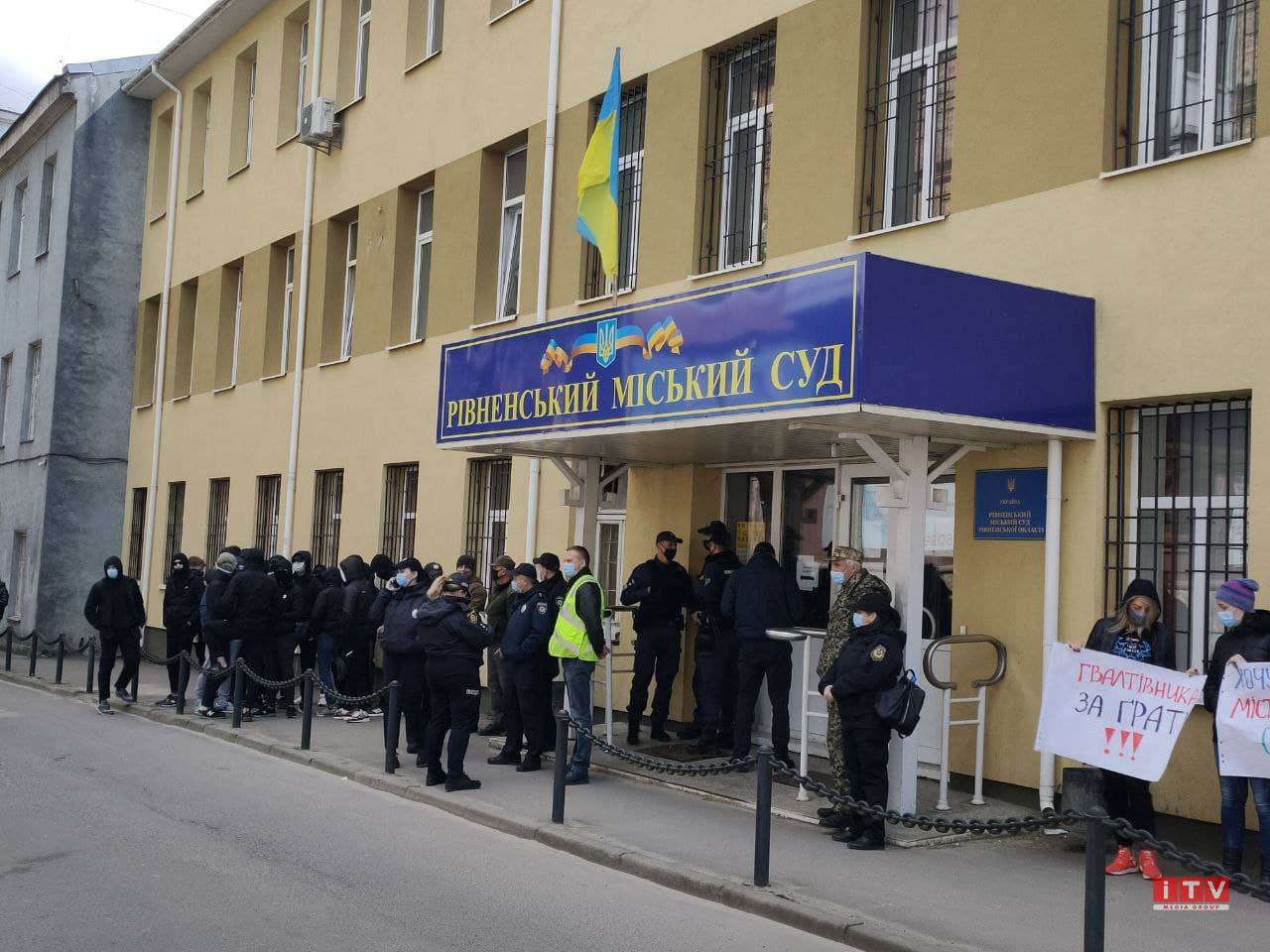 Як повідомляє журналіст ITV media group, громадські організації "Наша справа" та "Гонор" вимагають справедливого покарання для гвалтівника. Їх активісти запалили факели під стінами Рівненського міського суду.