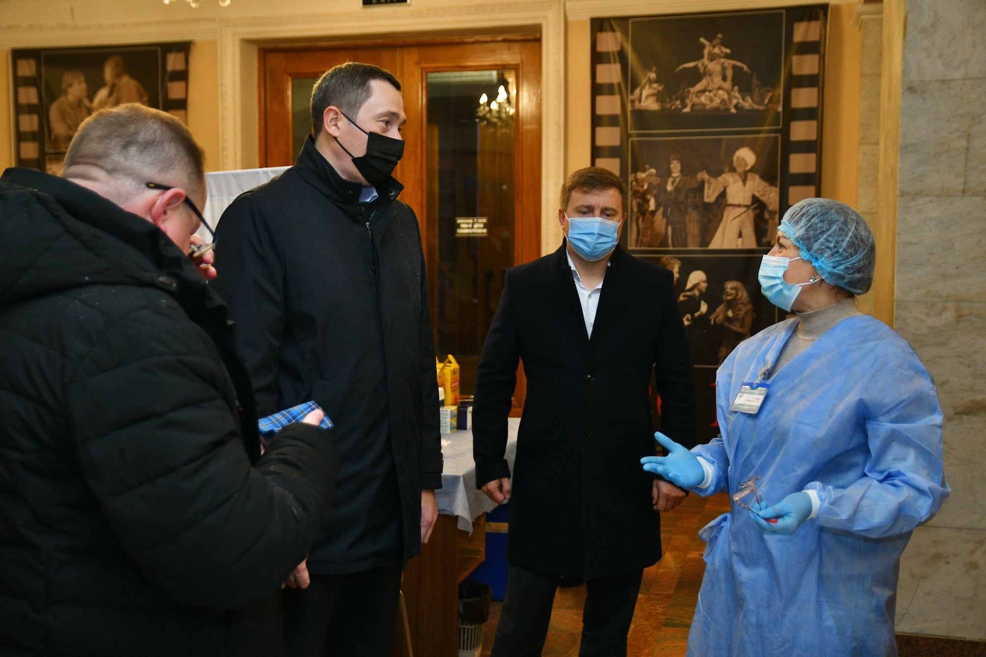 Міністр України Олексій Чернишов відвідав найбільш популярний центр вакцинації Рівного у драмтеатрі. Тут вже проведено майже 26 тисяч щеплень